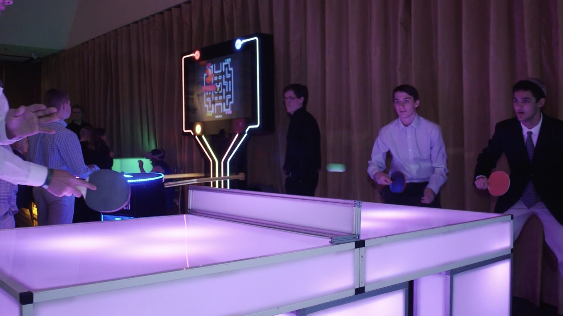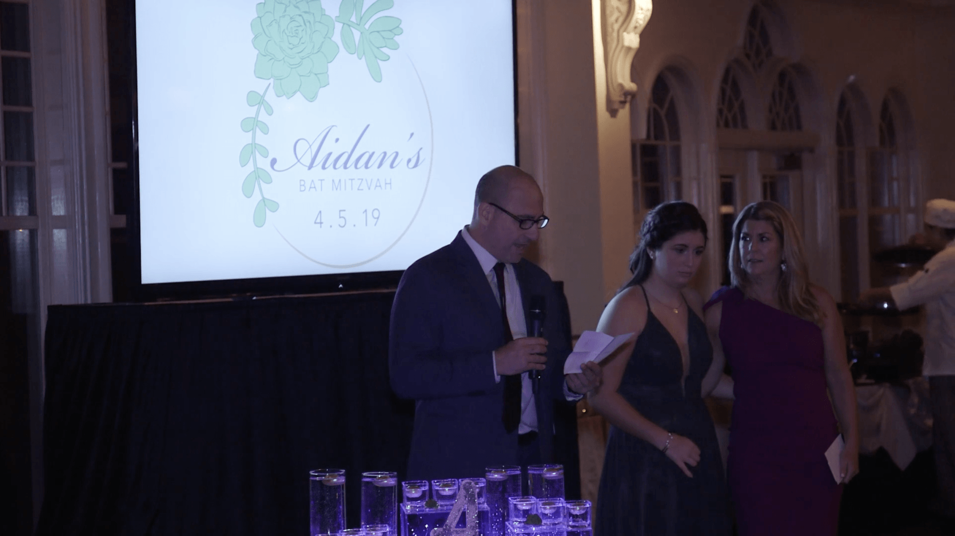 Aidan's Bat Mitzvah was a party for the ages and included a DJ, MC, tons of arcade games, dance floor lighting effects and custom design elements all provided by our team at Powerstation Events. Our Creative Director, Heather, designed Aidan's gobo which was also used on stickers, t-shirts and other decor elements.
