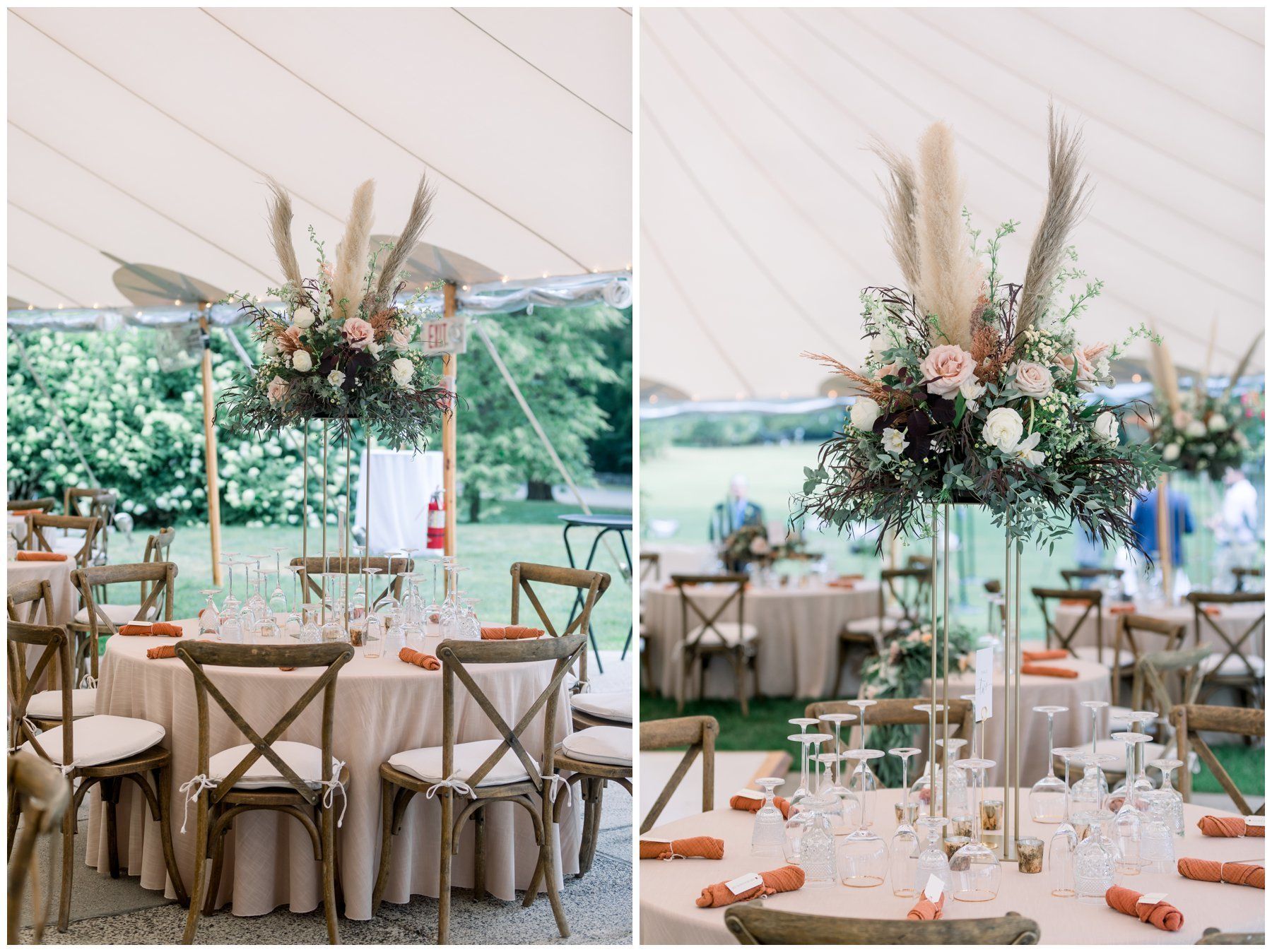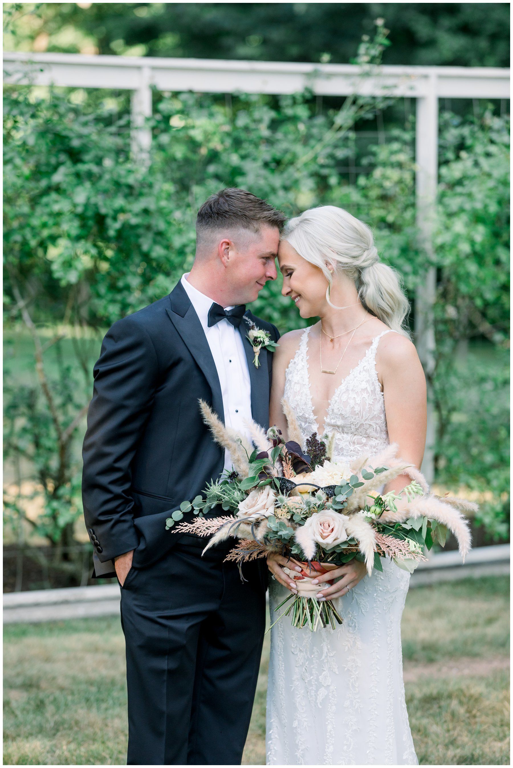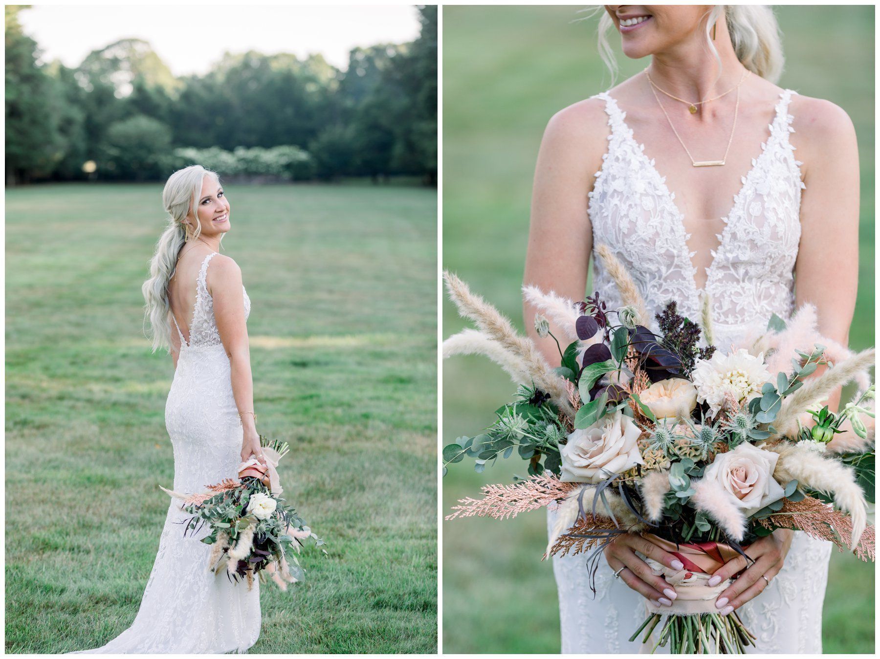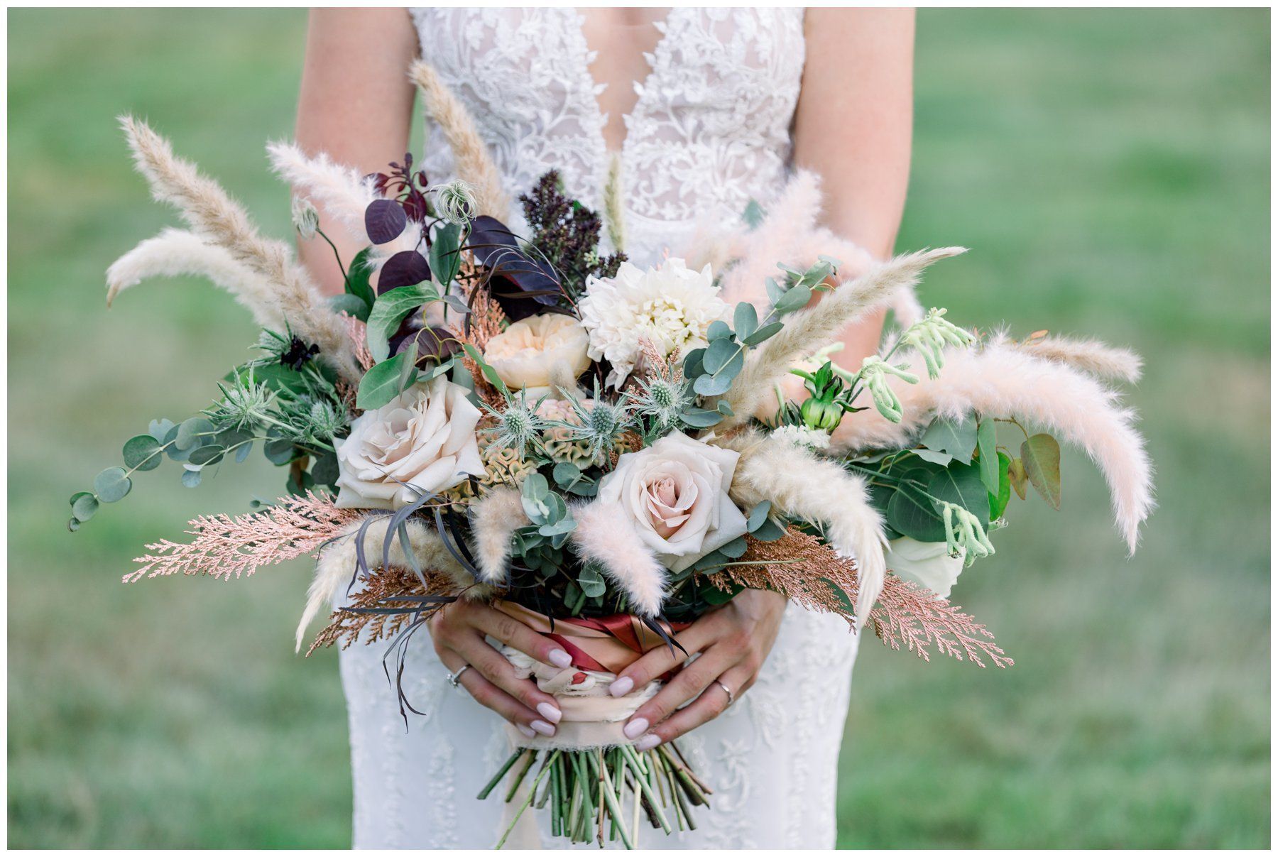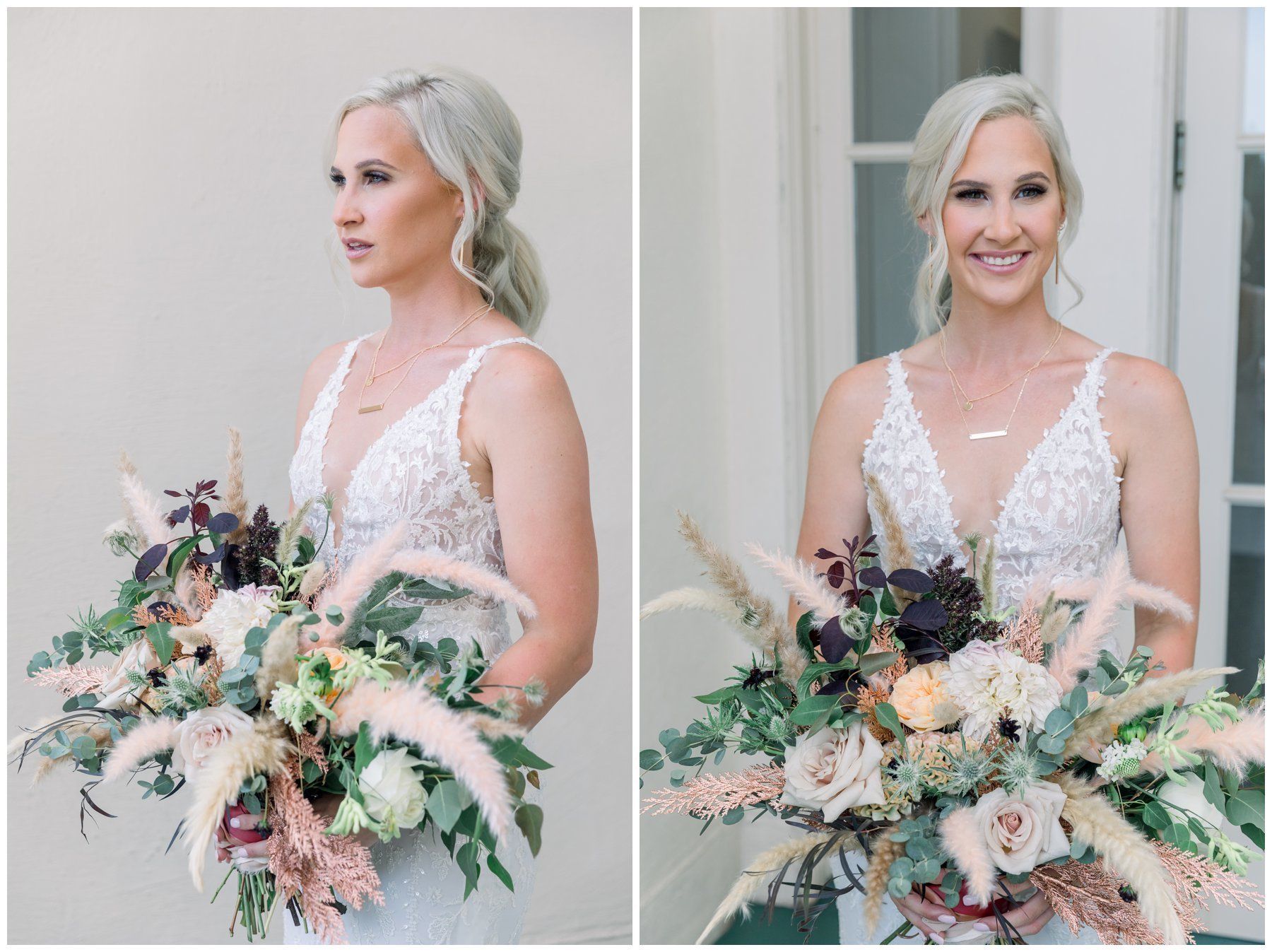 Their floral arrangements were full of pampas grass and blush roses, deep purples and a variety of eucalyptus.