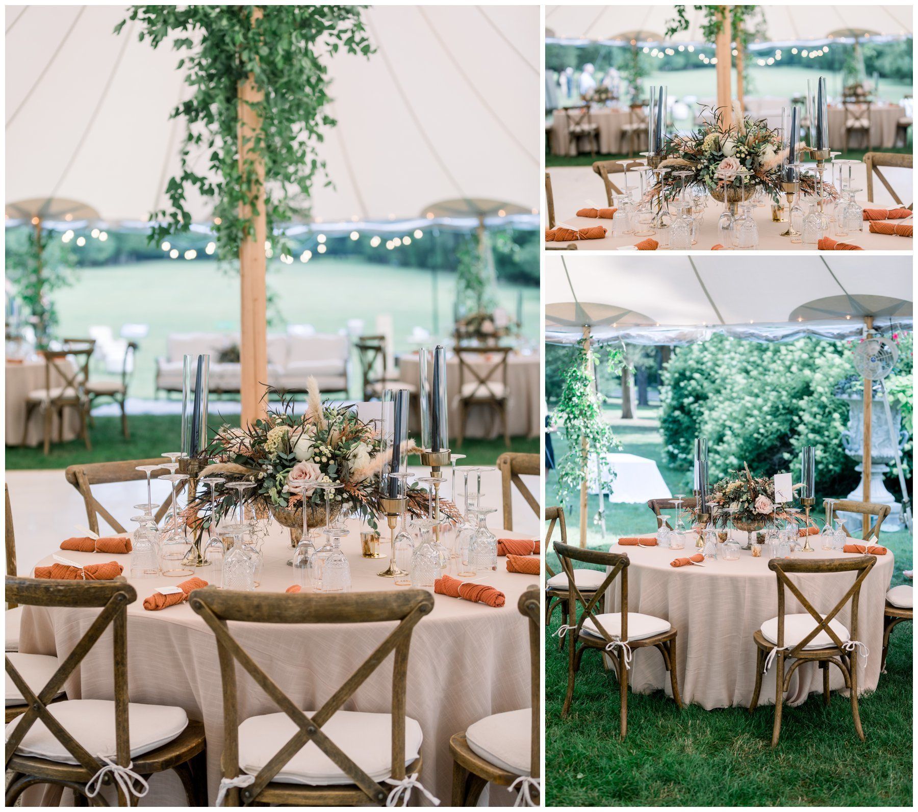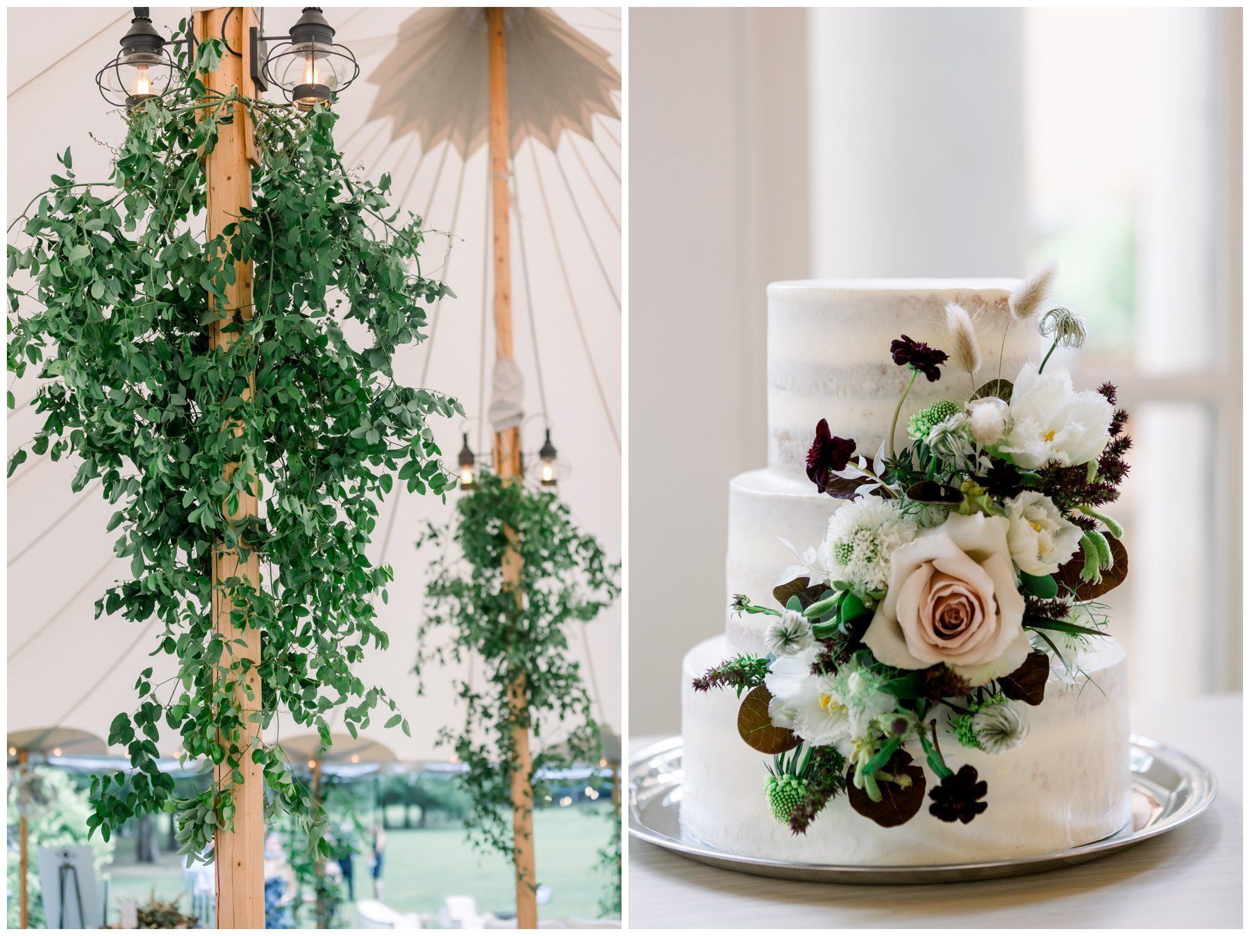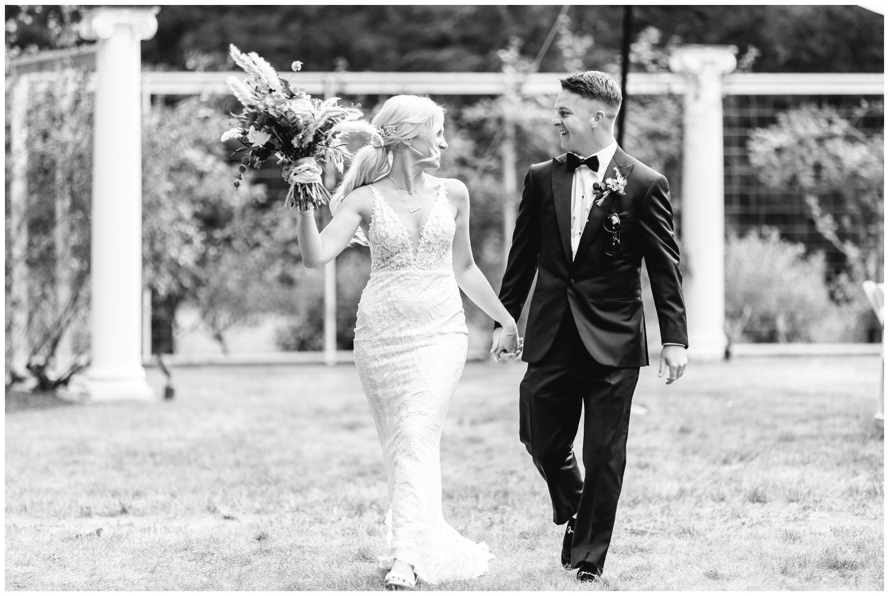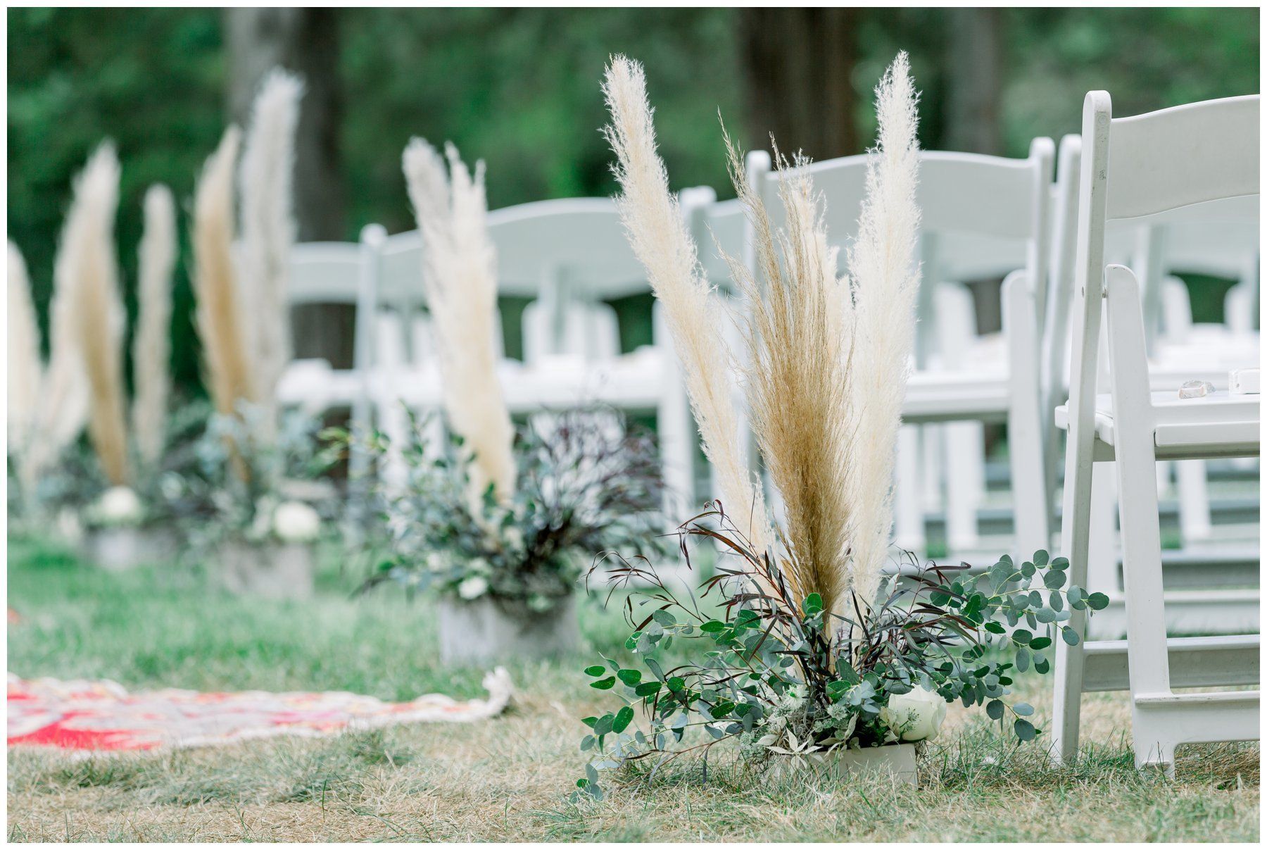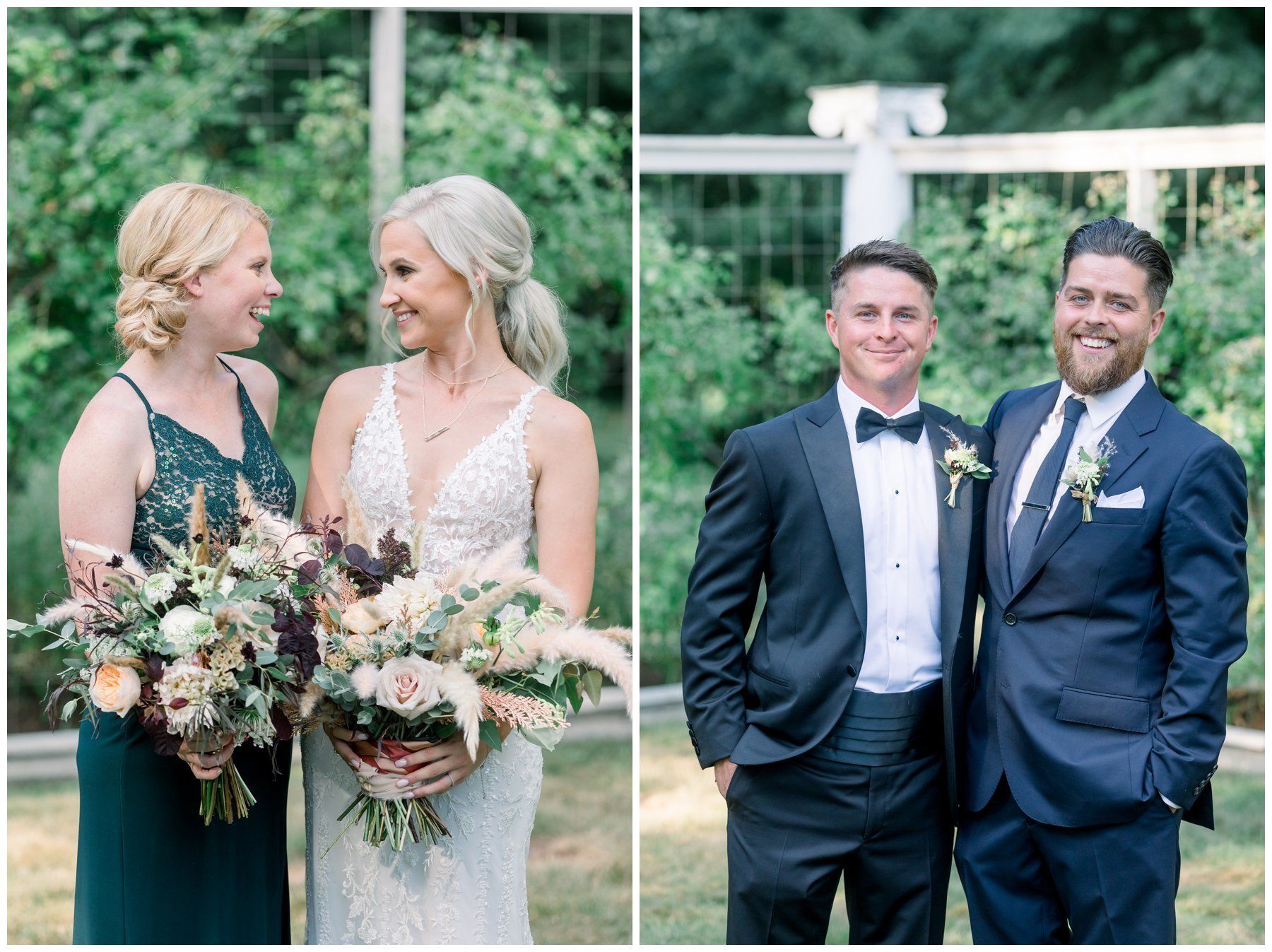 Their floral arrangements were full of pampas grass and blush roses, deep purples and a variety of eucalyptus.