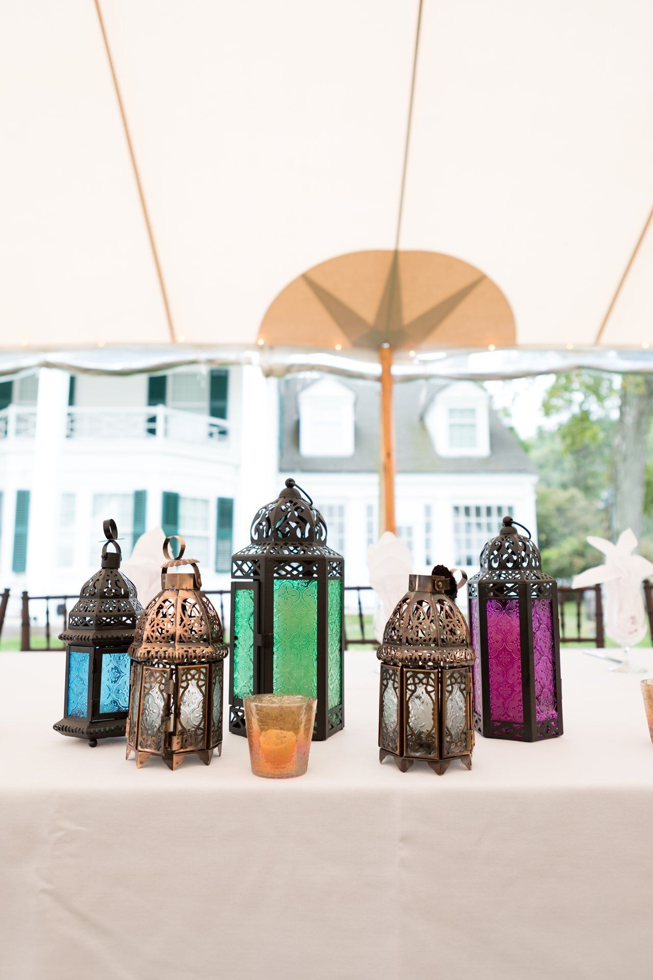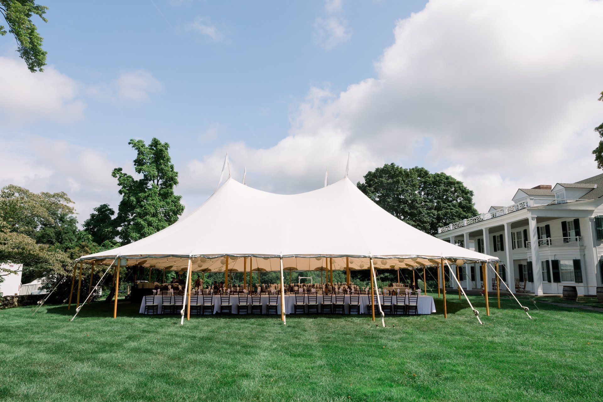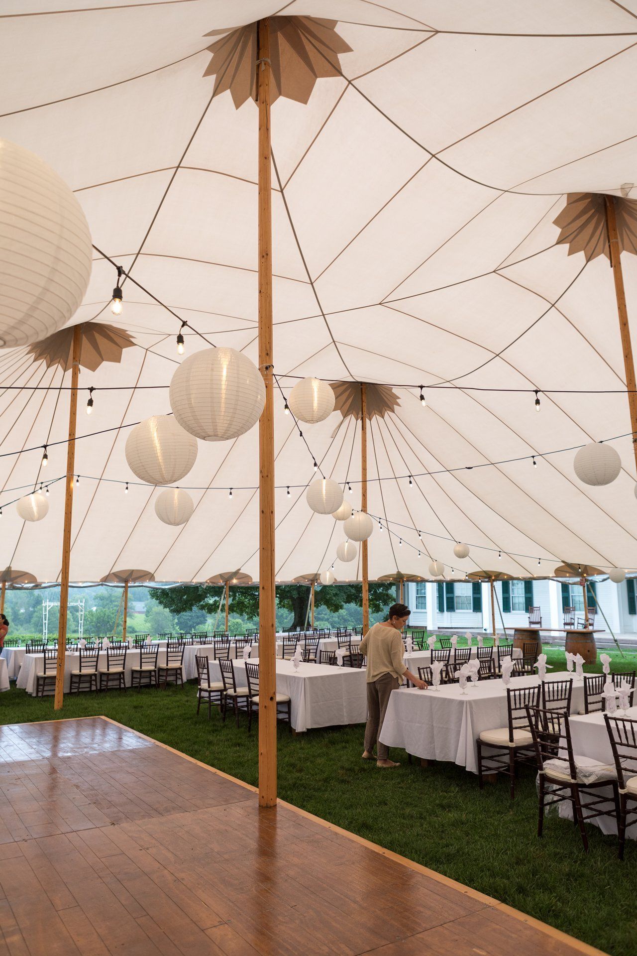 The reception tent on the lawn of the Hill-Steam Museum was adorned with string lights and lanterns for lunch and dinner.