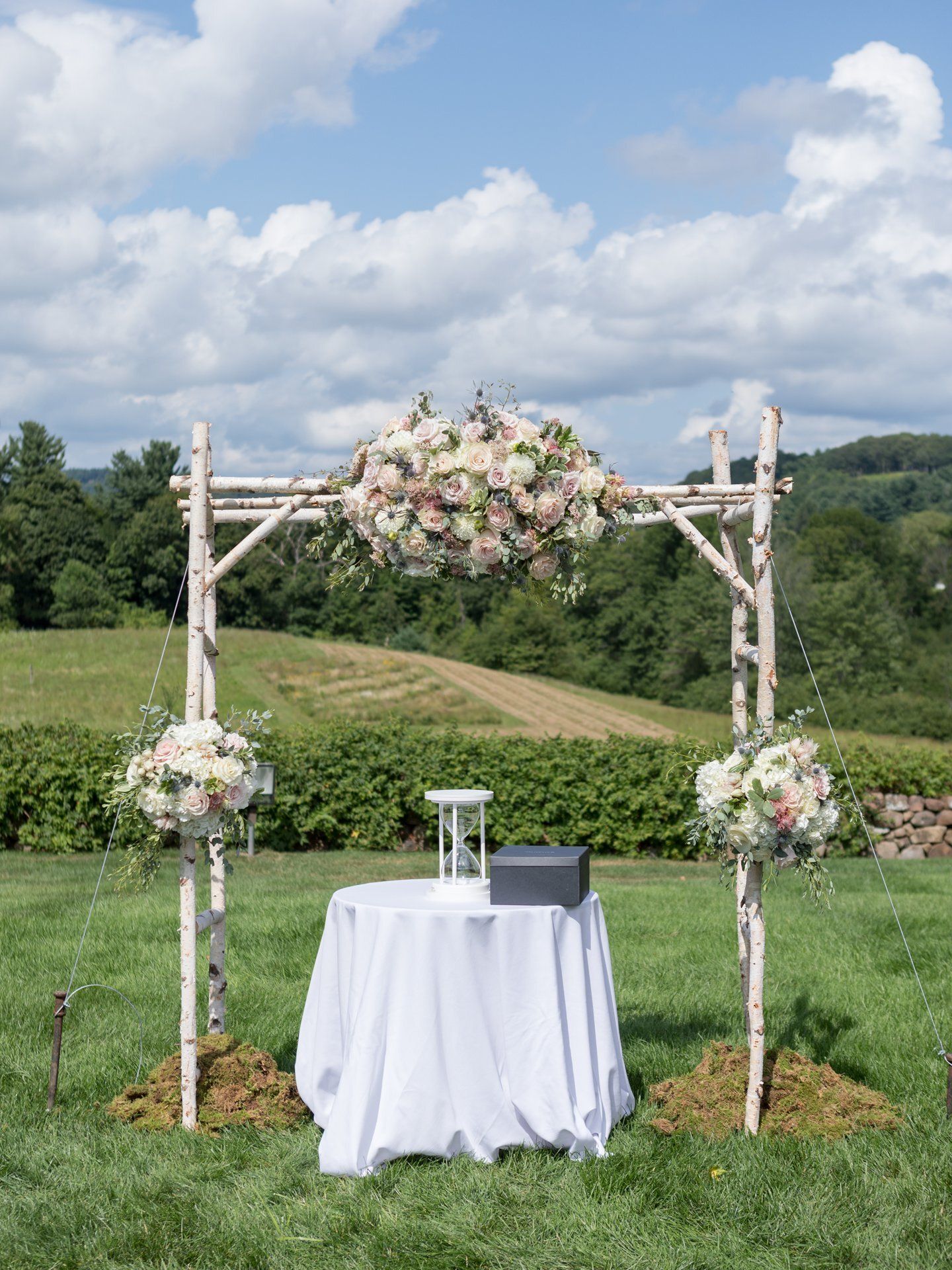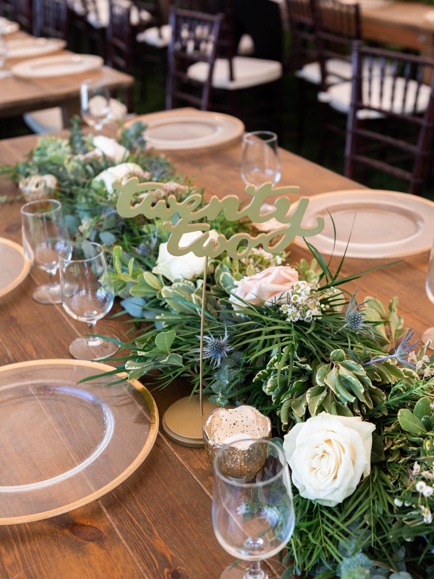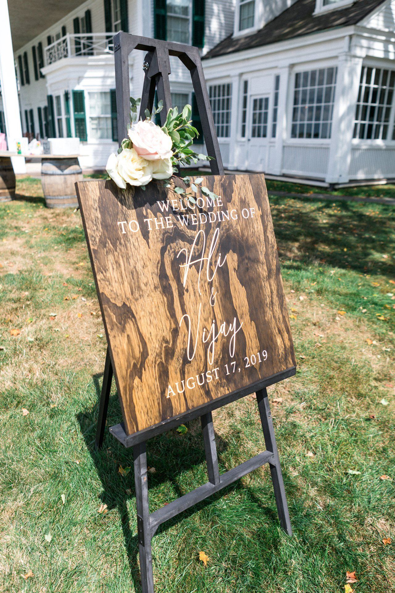 Nicknacks Calligraphy & Design created Ali and Vijay's wedding signage and table numbers and our decor team used the florals from the Hindu ceremony for the American ceremony.