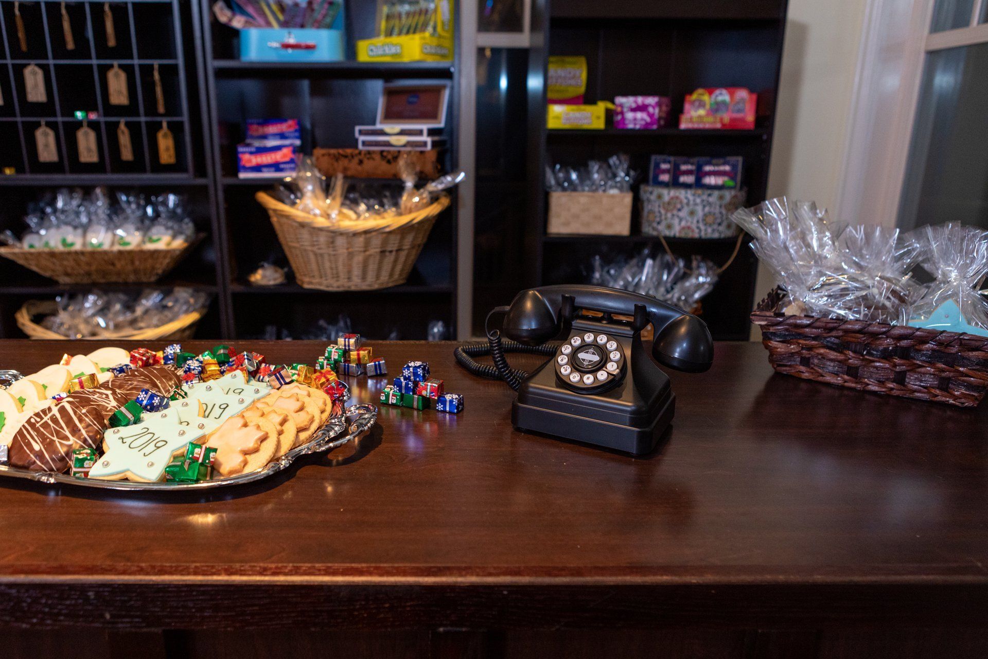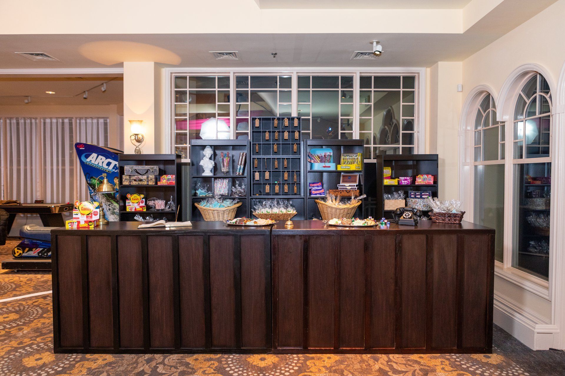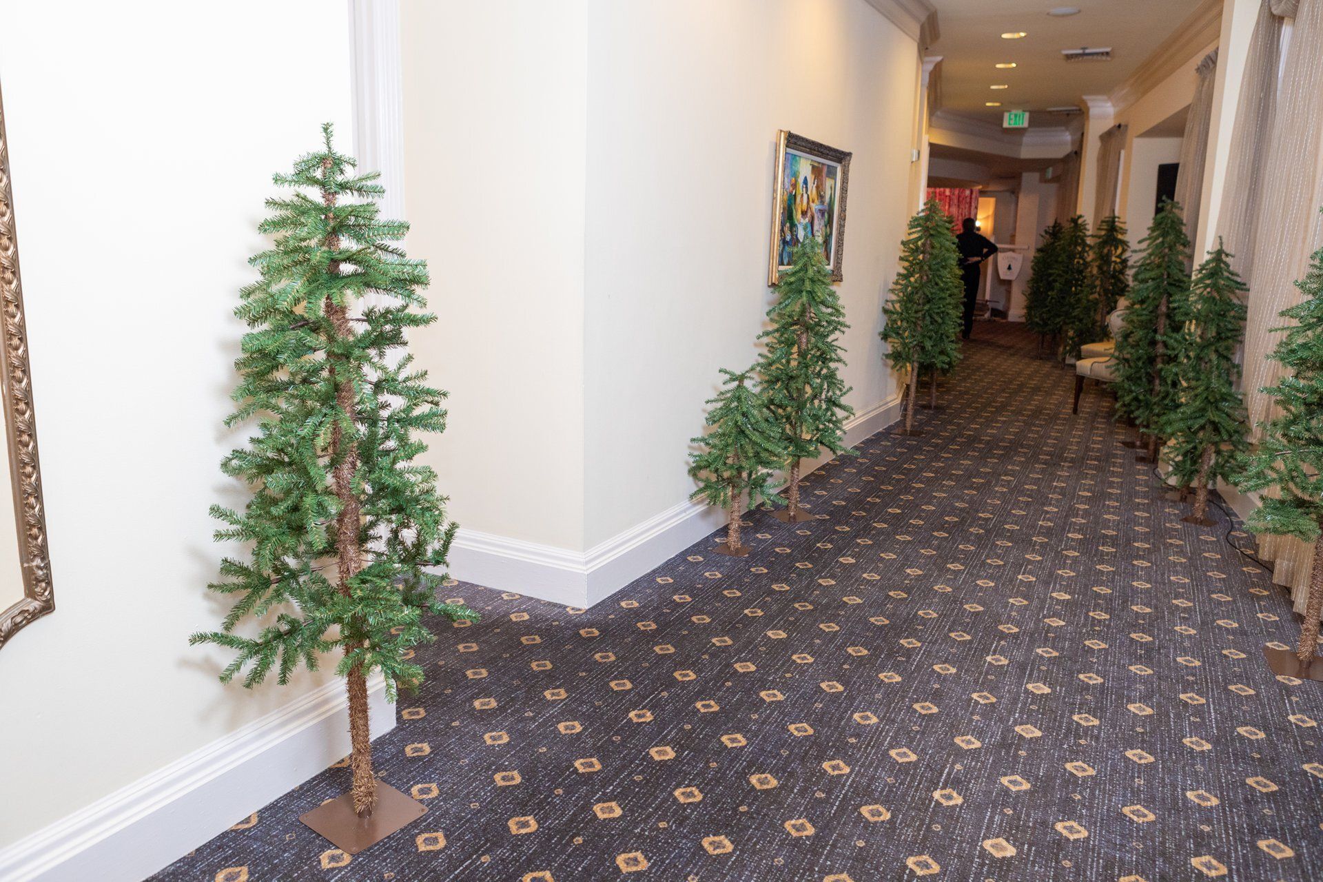 We also designed the Columbia Inn's reception desk from the ground up, offering vintage candies and room keys. Finally, our design and salon teams worked together to transform our staff into the movie characters themselves, and also a nine-foot-tall Christmas tree!