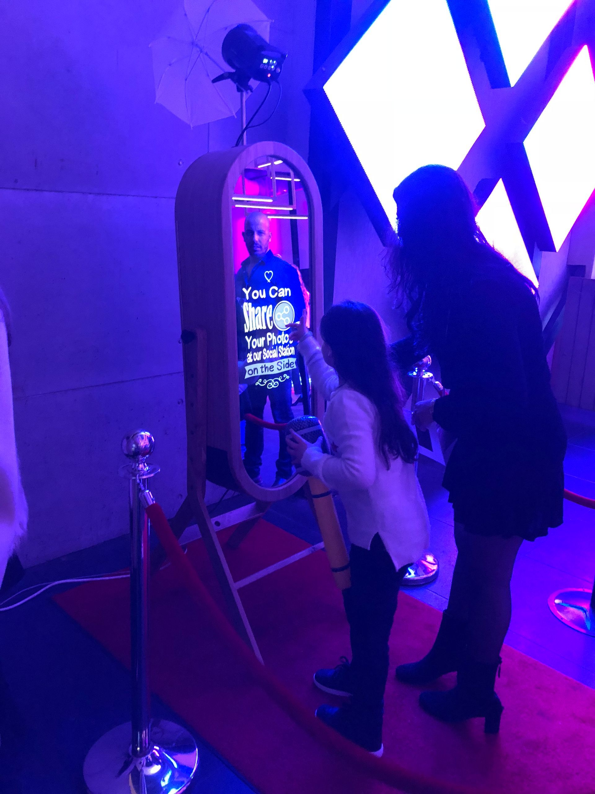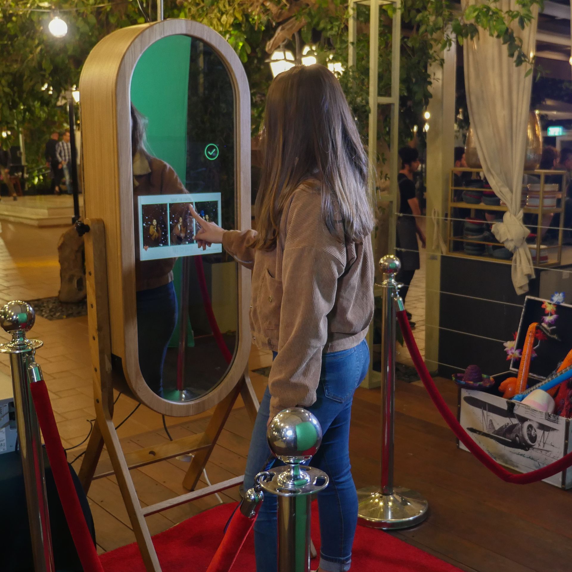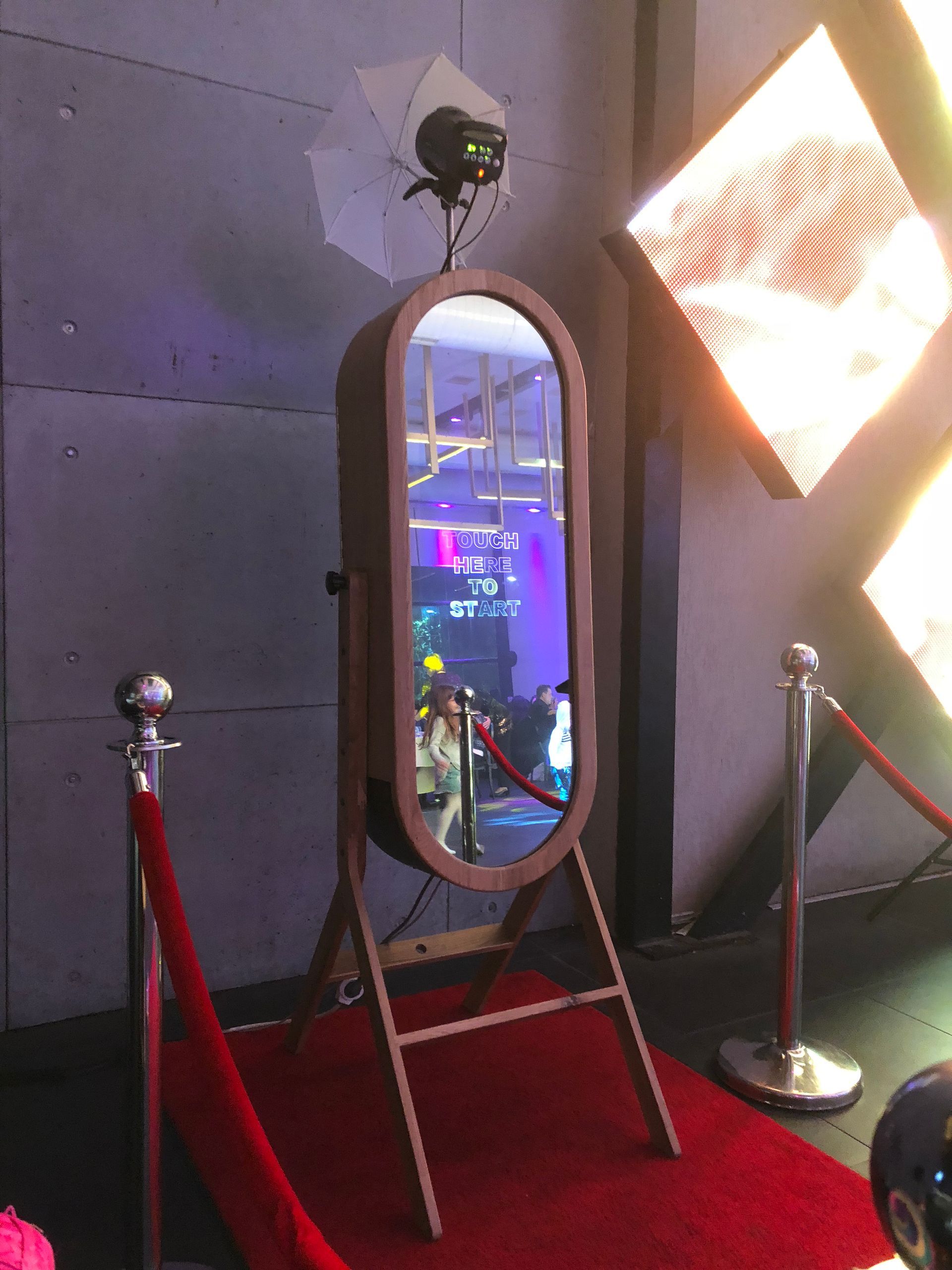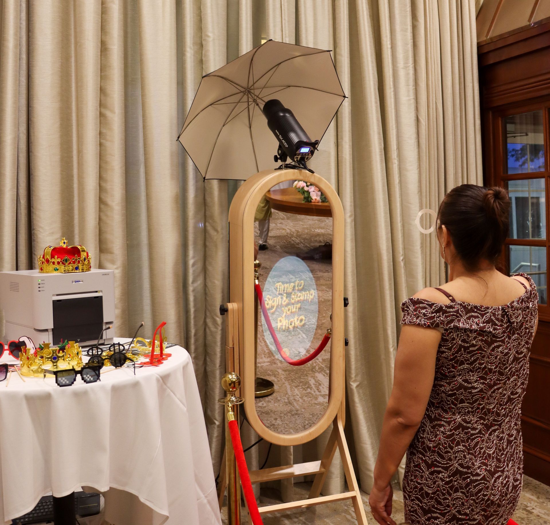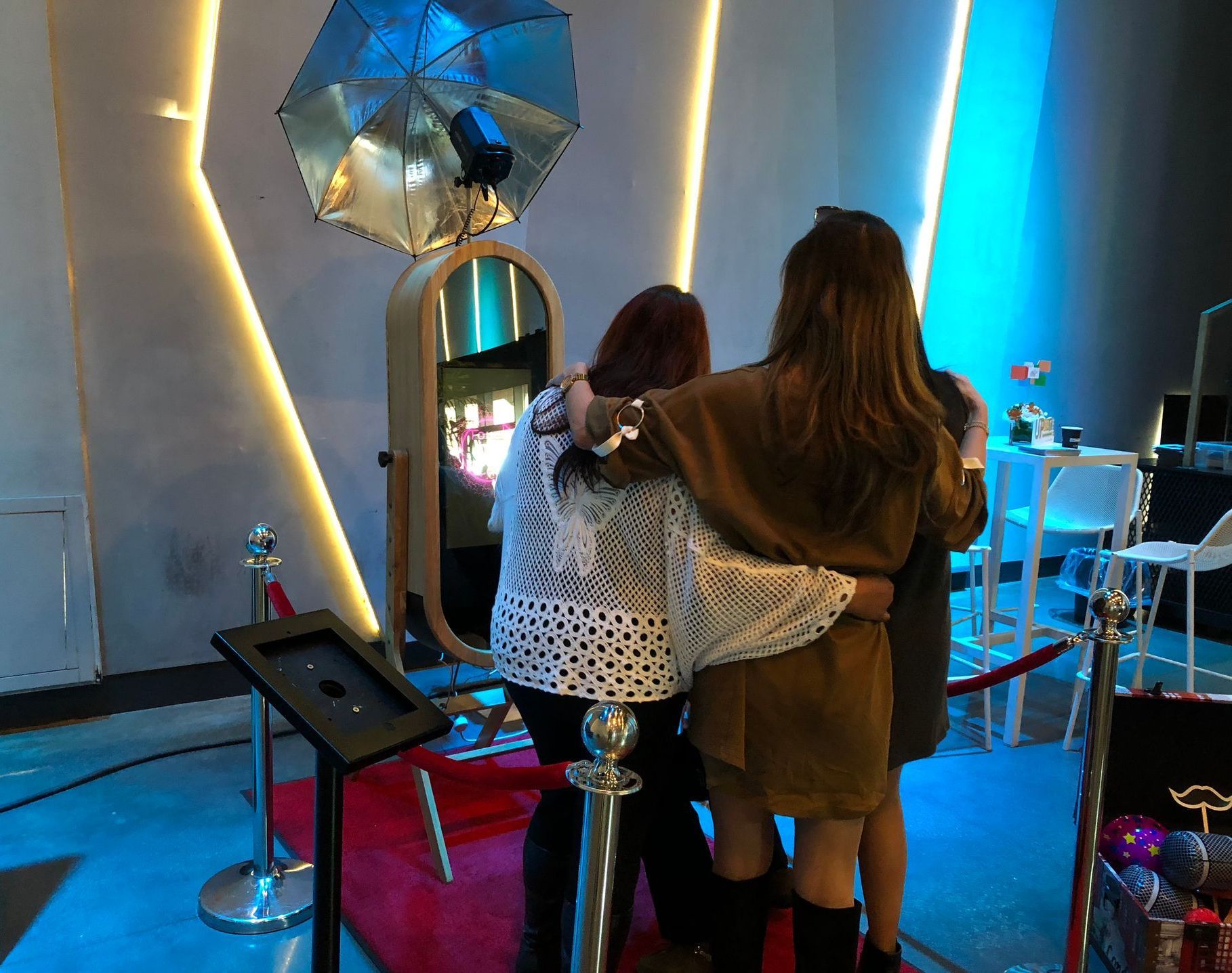 Our in-demand mirror photo booth is a nod to vintage charm mixed with the newest technologies. Take traditional still photos, change your background, pose for an AI headshot, create a GIF, add a glam filter - the mirror photo booth does it all!