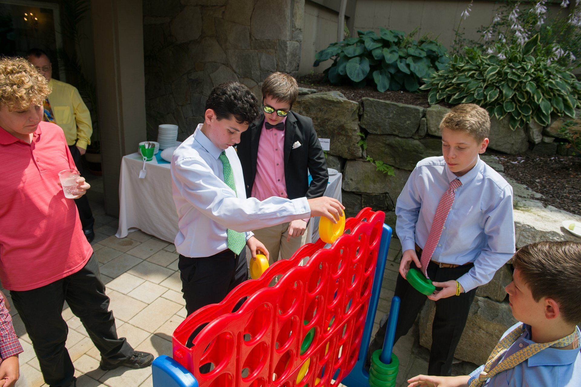 Lead Photographer Rick captured photos at temple of Mitchell and his family, as well as covered the reception and party portion of the celebration. Our design and decor teams created sunflower centerpieces and a custom hanging beach ball wall to coincide with the poolside theme. Guests had a blast in the green screen photo booth and DJ Jesse and our Dance Motivators had family and friends of all ages on the dance floor all afternoon!