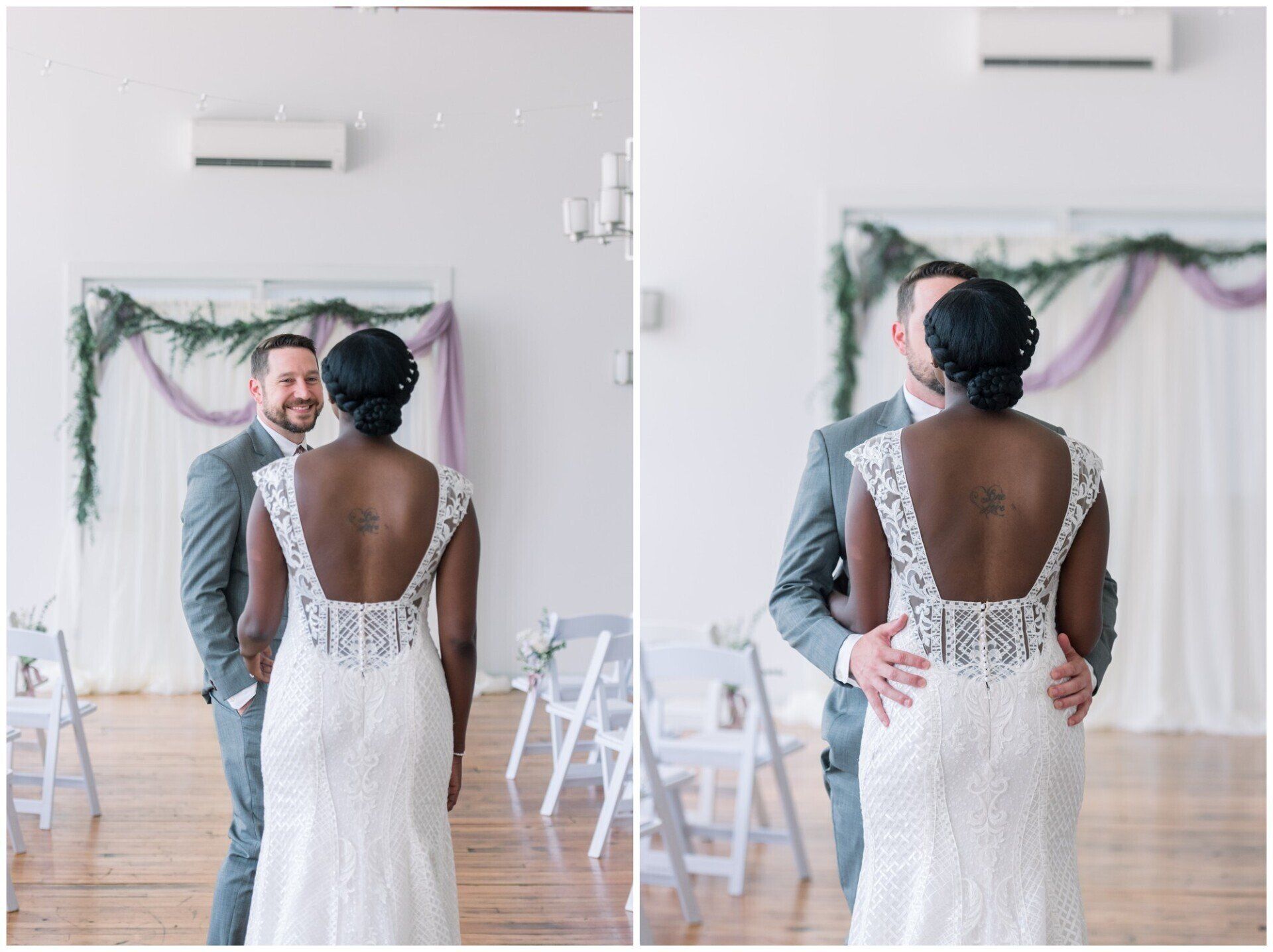 This means I strive for true-to-life colors with a soft & airy feel and crisp black and whites. I love focusing on small, pretty details of your wedding day as well as natural intimate moments and candid images of the people you’ve chosen to spend the most important day of your lives with. Rather than posing or staging moments, I prefer to coach a couple through natural feeling portraits that really speak to who they are as a couple, while still having them look their best and feeling confident. Finding beautiful light and striving to bring out the charm and uniqueness in every event is always my goal. Having a relationship with my couples is also a very important part of the process to me. Most of them become very close friends and I feel like this bond is one of the most important to have during your wedding. It’s what helps create an effortless shooting connection and a deep love for your images. One of my most favorite parts of a wedding day is when a couple chooses to do a “First Look”. The raw emotion, joy and excitement of seeing each other privately is just so inspiring to me and helps to create such a relaxed environment for the remainder of the day.