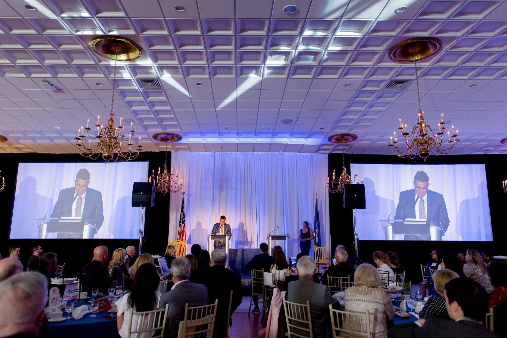For its annual dinner and award ceremony, our team Powerstation Events is thrilled to provide staging, lighting, drape, podiums, crystal clear audio and our largest projection screens, all captured here by one of our professional corporate photographers.