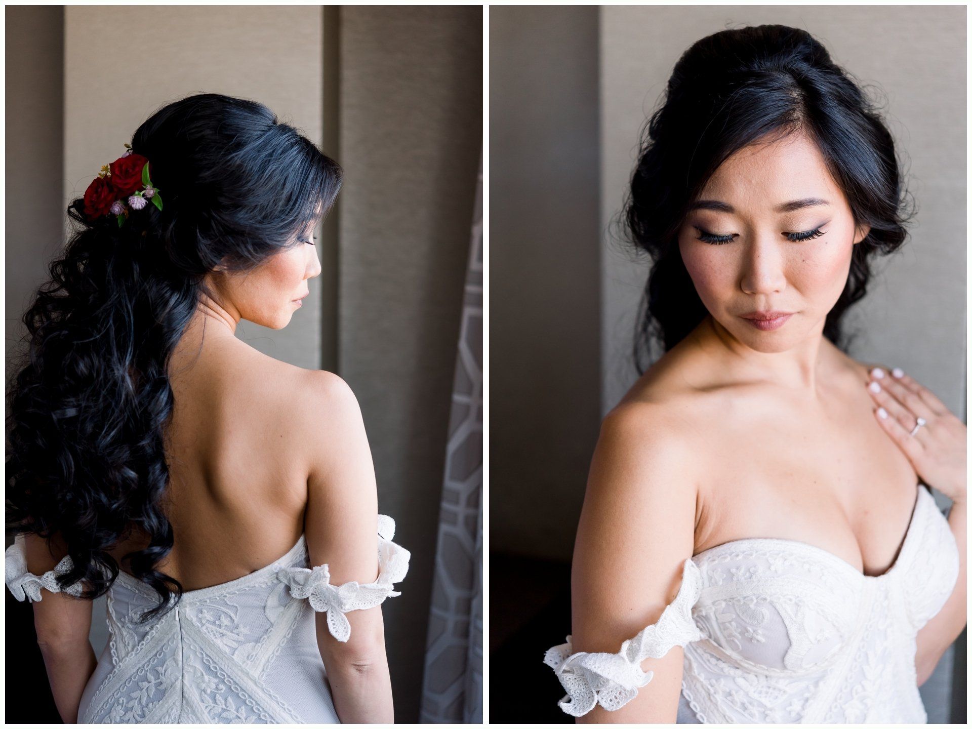 - Bring your headpiece or veil to make sure it works with your day-of do! It’s important to consider the headpiece from the beginning so you can make sure it will fit properly and stay put.