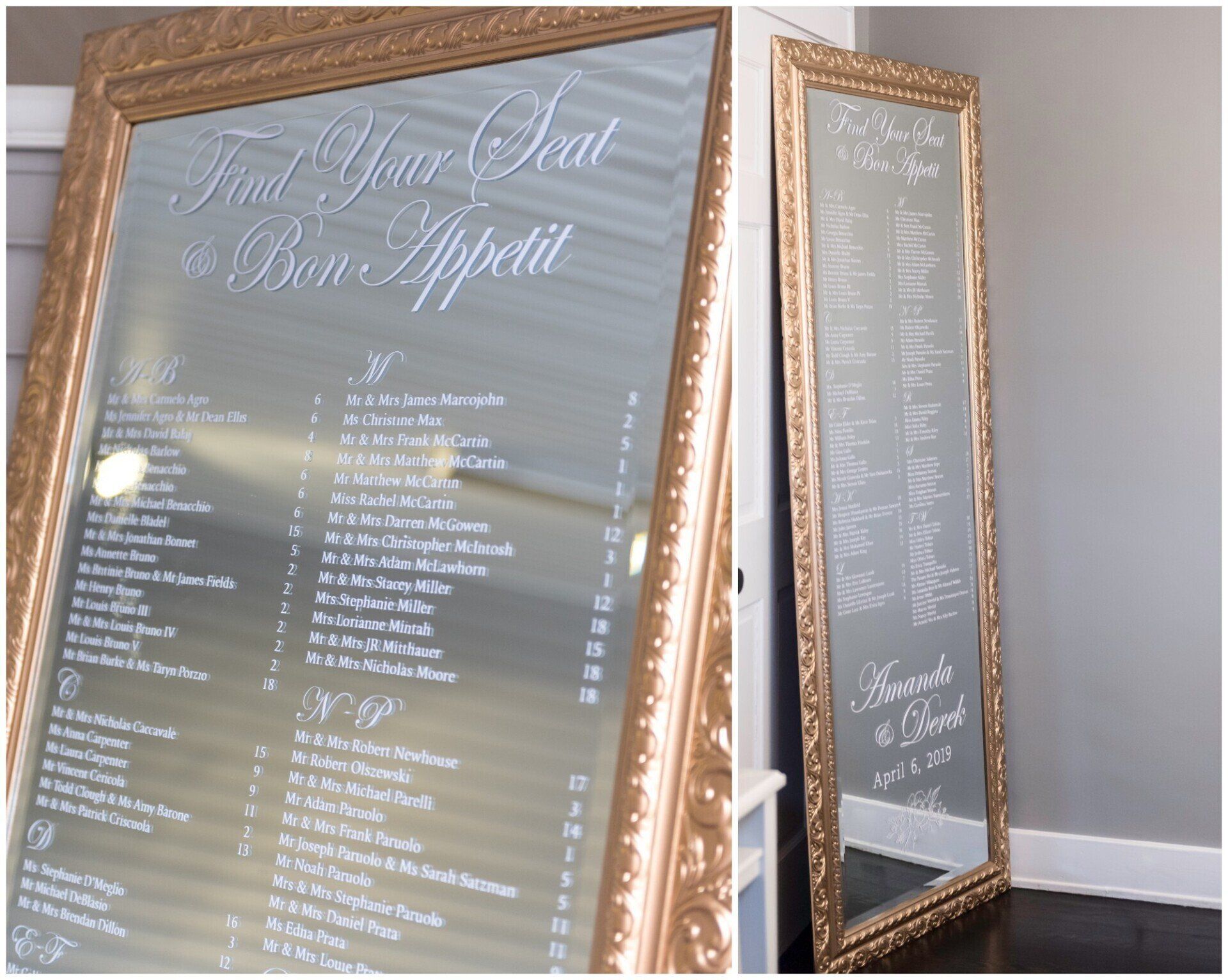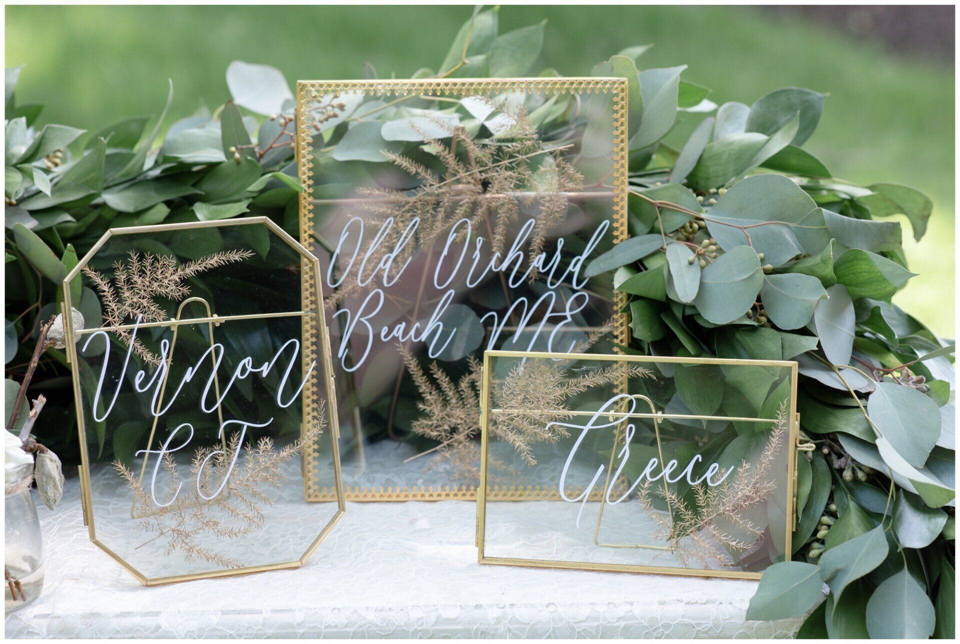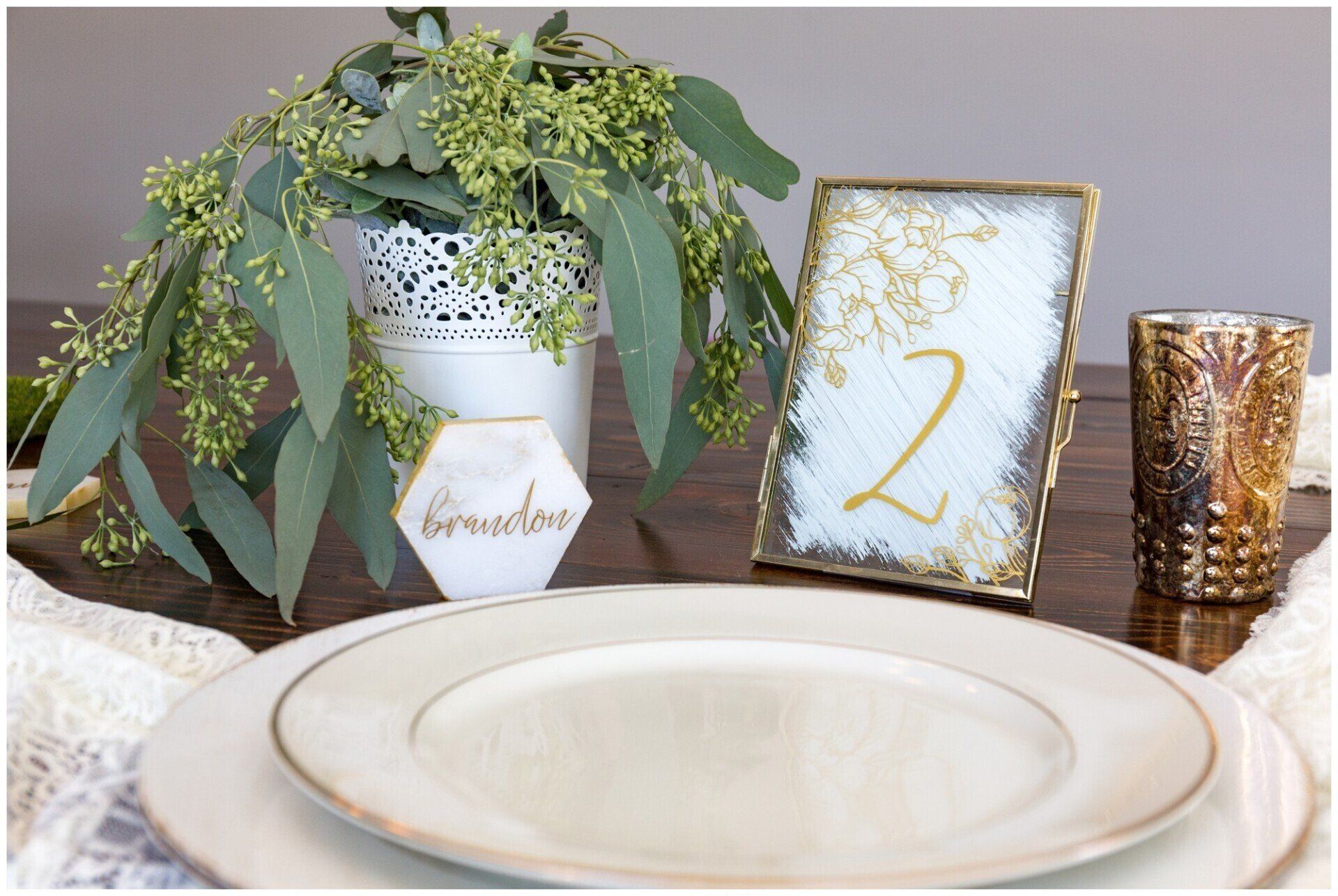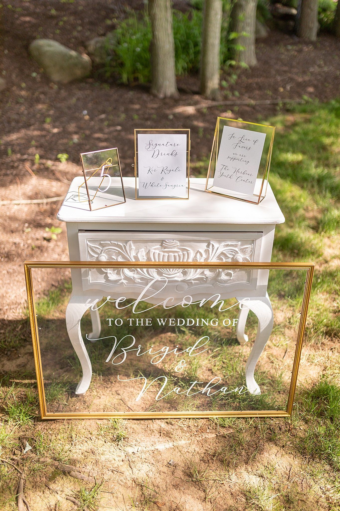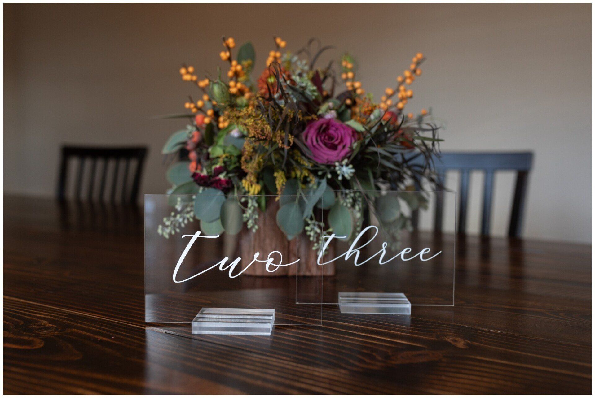 Personalize your wedding with pieces made on your choice of material from wood, clear and colored acrylic, mirror, chalkboard, printed products or even organics.