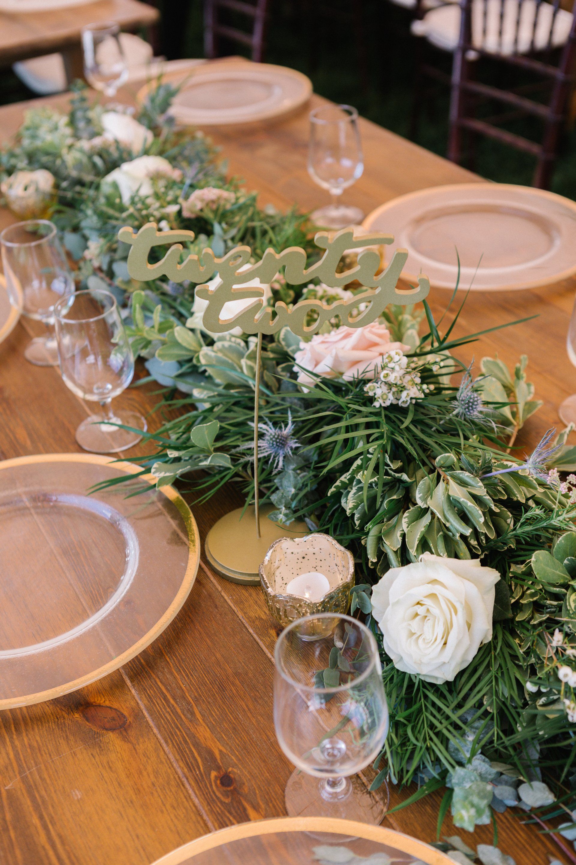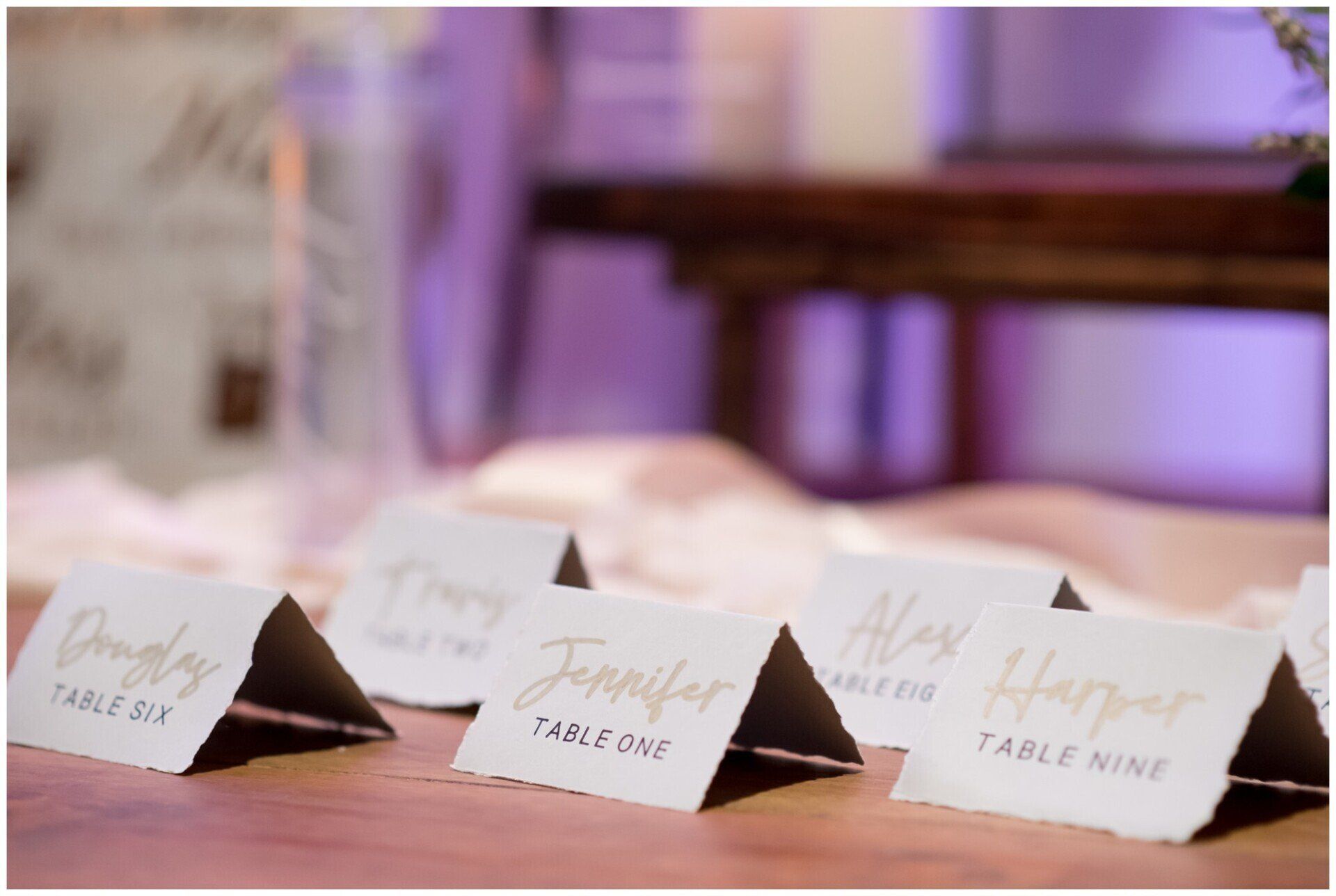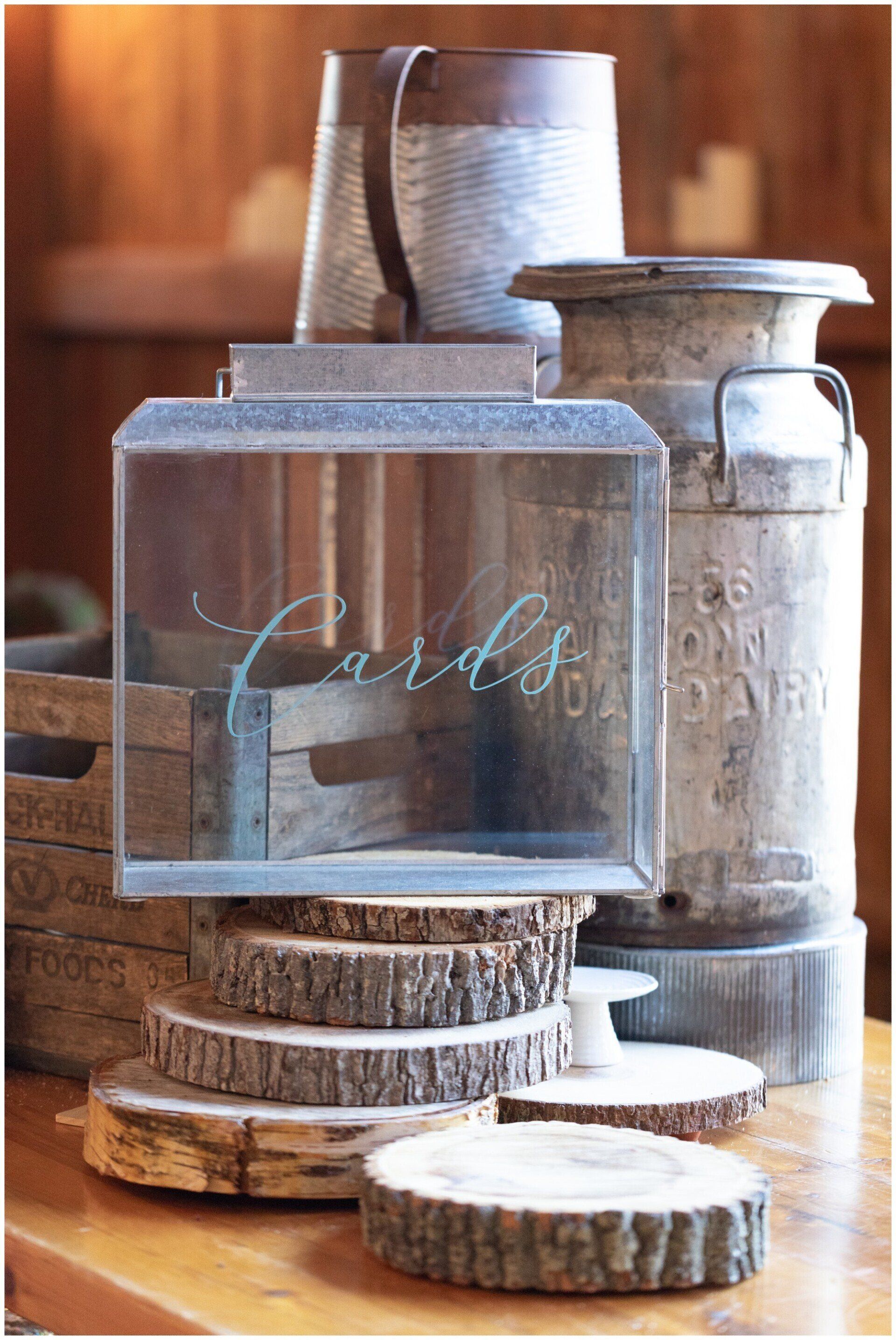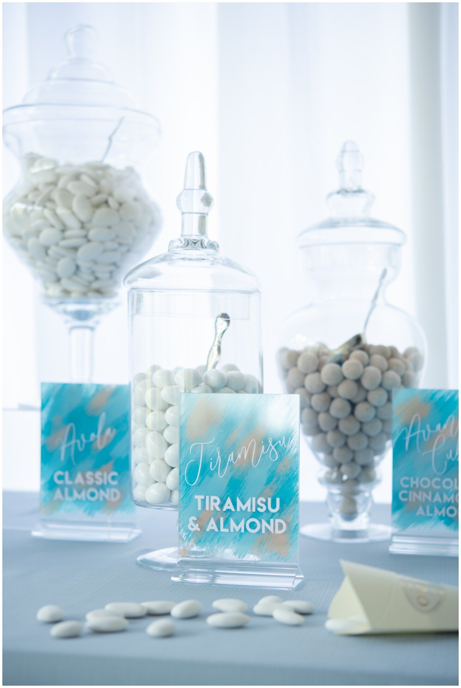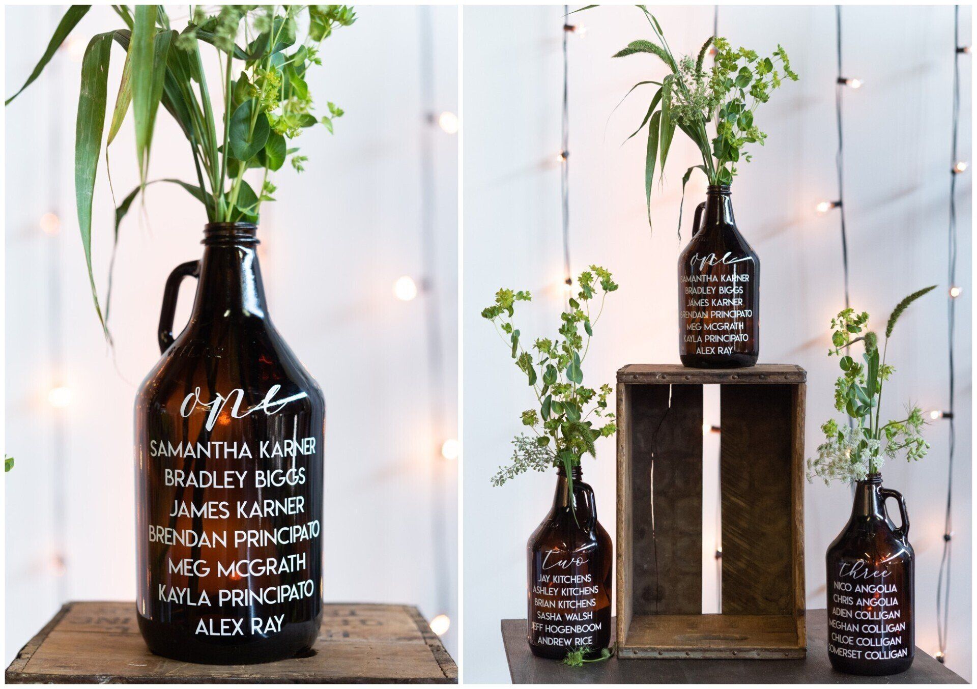Personalize your wedding with pieces made on your choice of material from wood, clear and colored acrylic, mirror, chalkboard, printed products or even organics.